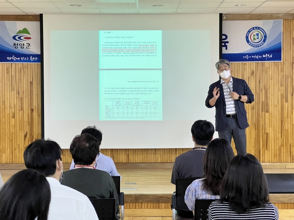이번 교육은 김장묵 청양군 정책특별보좌관을 초청해 공공의료 정책의 변화와 우수 사례 등을 교육해 직원들에게 큰 호응을 얻었다.