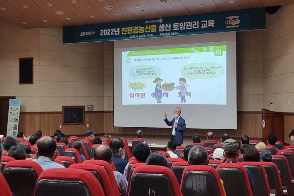 교육은 친환경 농업의 기본이 되는 토양관리의 중요성과 효율적인 관리 방법에 대해 농업인들이 이해하기 쉬운 언어로 진행됐다.