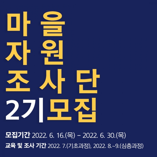 [충청뉴스큐] 부여군 지역공동체 활성화재단이 운영하는 마을만들기 지원센터가 부여군의 가치 있는 농촌자원을 발굴할 ‘2022 마을자원조사단 2기’로 활동할 교육생을 모집한다.