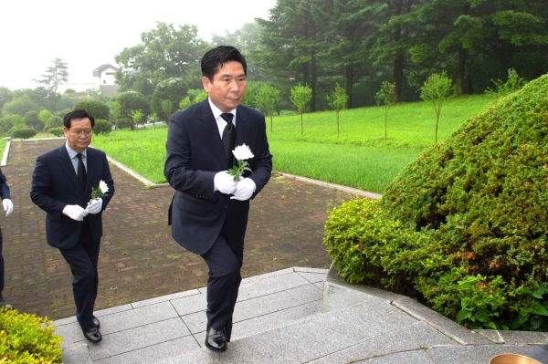 [충청뉴스큐] ‘역동적이고 새로운 경제도시 제천’을 기치로 민선8기를 새롭게 이끌어 갈 김창규 시장은, 취임식에 앞서 7월 1일 오전 충혼탑을 찾아 헌화·분향으로 공식업무를 시작했다.