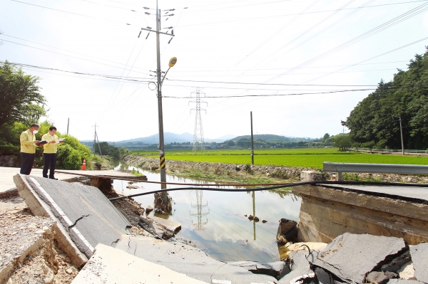 운산면장 및 지역 주민과 상황을 이야기하며 대책을 논의하고 도로과 등 관련 부서와 협업을 통해 신속한 복구에 총력을 쏟을 것을 약속했다.