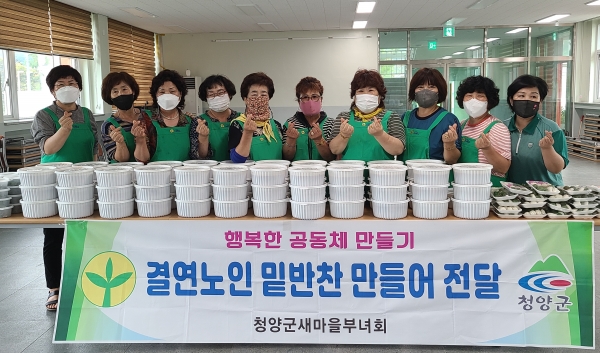 [충청뉴스큐] 청양군새마을부녀회가 지난 4일 비봉면 복지회관에서 행복한 공동체 조성과 결연 노인들의 여름 건강을 위한 밑반찬 나눔 봉사활동을 가졌다.