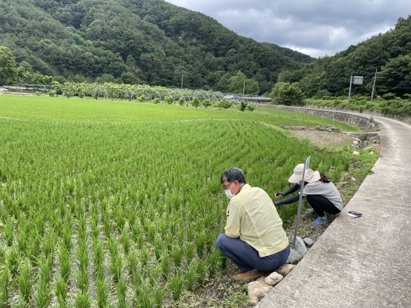 [충청뉴스큐] 충북 영동군이 고품질 쌀 생산을 위해 먹노린재 예찰 활동을 강화하며 벼 농가의 적기 방제를 당부하고 있다.