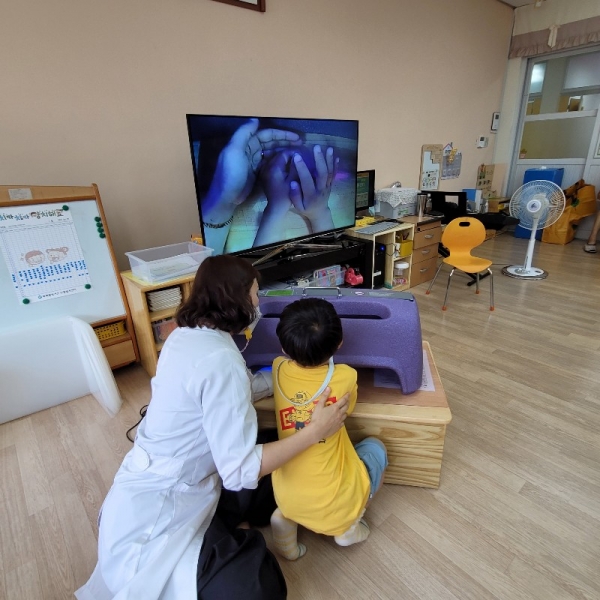 시청각 교육과 더불어 손씻기 체험도구 ‘뷰박스’를 이용해 손씻기 전후 청결 상태를 아이들 눈으로 직접 확인하는 체험 교육이다.