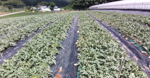 군은 올해 3월부터 1000만원의 사업비를 들여 노지 수박 0.2ha 이상을 재배하는 2곳의 농가를 선정해 총 1.2ha 규모로 시범사업을 추진해왔다.