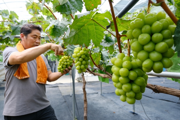 영동군의 샤인머스켓은 탐스러운 빛깔과 높은 당도를 자랑해 국내외 상관없이 큰 인기를 얻고 있다.