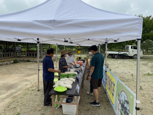 [충청뉴스큐] 당진시가 농산물 판로 확보에 어려움을 겪고 있는 농가에 도움을 주고자 합덕제 수변공원 방문객을 대상으로 신선한 지역 농산물을 접할 수 있는 농산물 직거래장터를 운영 중이라고 18일 전했다.