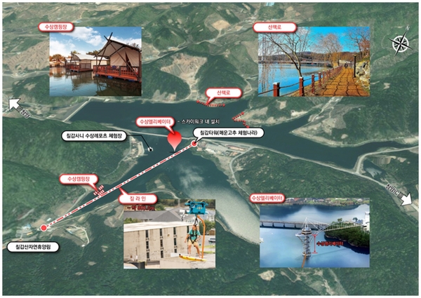 주요 사업은 스카이워크와 연결되는 수상 엘리베이터, 수상 캠핑 시설, 짚라인, 산책로 조성 등이다.