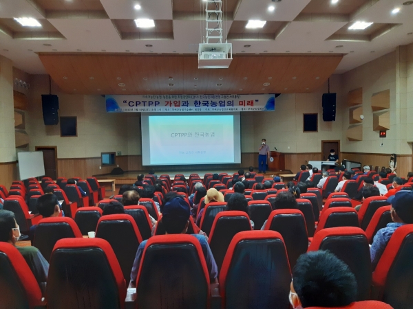 농업회의소를 통해 개최한 이번 강연회는 CPTPP 협상 경과 및 농산물 양허협상 내용 CPTPP 가입 시 예상되는 농업부문 영향 우리 농업이 나아갈 길 등에 관한 소개를 골자로 구성됐다.
