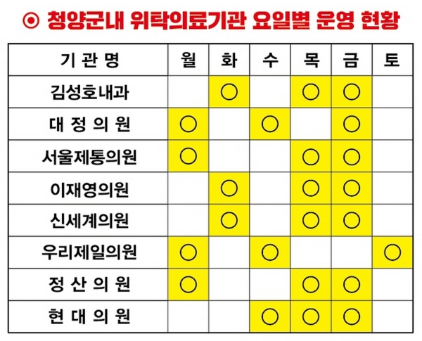 청양지역 접종 위탁의료기관은 8곳으로 청양읍 6곳과 정산면 2곳이다.