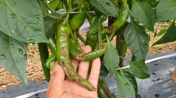 고추 탄저병은 과실에 연록색의 작은 병반이 생기고 점차 둥근 무늬로 확대되어 움푹 들어간 궤양증상을 나타내며 발병되면 급격히 확산돼 심각한 피해를 초래한다.