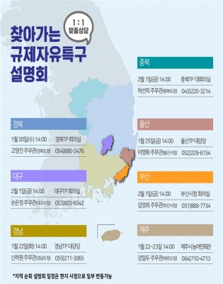 특히, 규제자유특구를 처음 접하는 기업인들과 관심 있는 시민들 누구나 쉽게 이해할 수 있도록 ‘헬프 데스크’를 마련, 1:1 맞춤상담을 운영할 계획이며, 지방중소기업청에서는 규제자유특구 ‘지역전담관’을 지정해 특구 참여희망 기업의 궁금증 해소에 최선을 다할 예정이다.