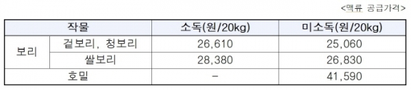 보리은 26,610~28,380원/20kg, 보리은 25,060~26,830원/20kg에, 호밀은 41,590원/20kg에 각각 구입할 수 있다.