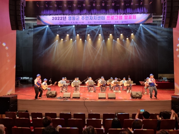읍면간 선의의 경쟁과 협력을 유도하고 코로나19로 침체되 있던 주민자치센터 프로그램 운영 활성화를 위해 영동군주민자치위원회 주관으로 8일 복합문화예술회관에서 영동군 주민자치센터 프로그램 발표회가 개최됐다.