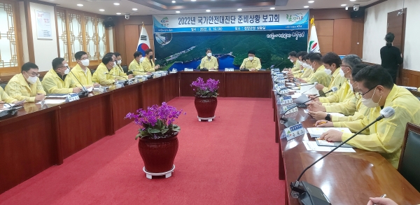 [충청뉴스큐] 청양군이 지난 16일 군청 상황실에서 각 부서장과 읍·면장 등이 참석한 가운데 2022년 국가안전대진단 준비상황을 보고회를 열었다.