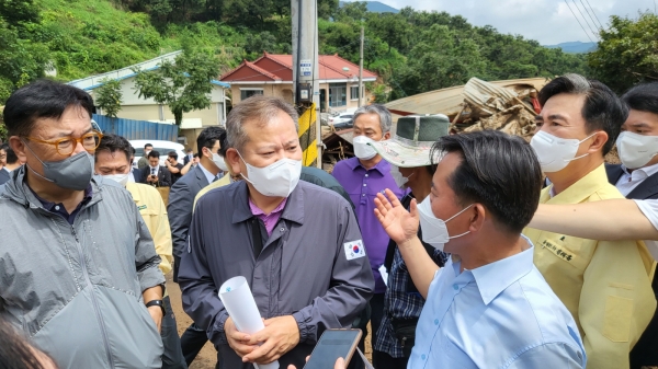 박 군수는 이날 은산면 거전리 수해현장을 찾은 이상민 행정안전부 장관에게 피해상황을 설명하고 특별재난지역 선포가 신속하게 이뤄질 수 있도록 건의했다.