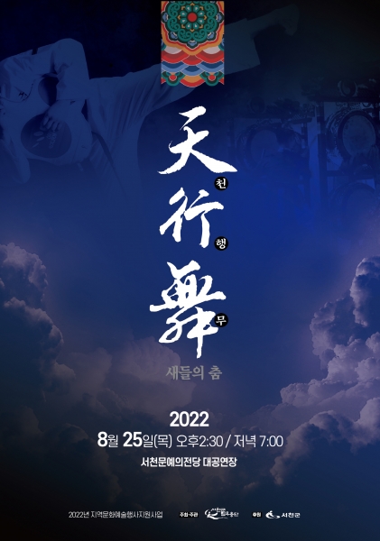 [충청뉴스큐] 서천군이 2022년 지역문화예술행사 지원사업의 일환으로 서천군립예술단 전통무용단의 ‘천행무-새들의 춤’ 공연을 오는 25일 오후 2시 30분, 7시 2차례 서천문예의전당 대강당에서 선보인다고 밝혔다.