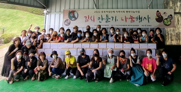 [충청뉴스큐] 보은군여성단체협의회는 지난 22일 다문화가정 및 어려운 가정에 김치를 지원하는‘충북여성단체지역사회 행복나눔 사업’행사를 가졌다.