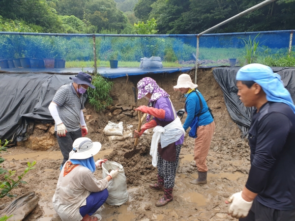 중장비가 진입할 수 없는 곳에 집중하면서 복구 작업에 구슬땀을 흘렸다.