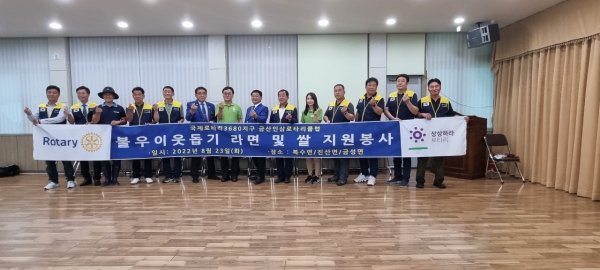 [충청뉴스큐] 국제로타리3680지구 금산인삼로타리클럽은 지난 23일 어려운 이웃에게 전달해 달라며 금성면, 진산면, 복수면을 방문해 각 200만원씩 총 600만원 상당의 라면과 쌀을 기탁했다.