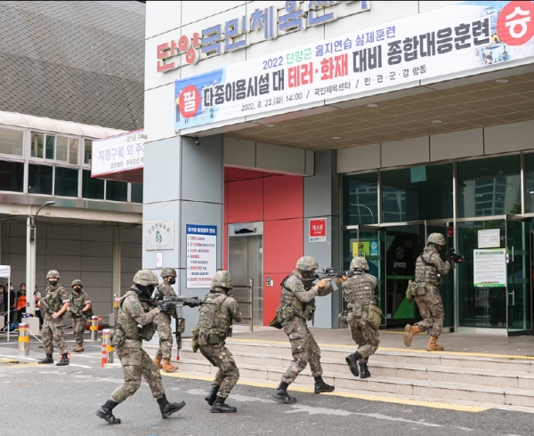 [충청뉴스큐] 단양군은 지역통합방위태세 확립을 위한 대테러 및 화재 대응 종합훈련을 실시했다.
