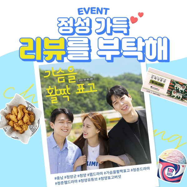 자세한 이벤트 내용은 청양군 공식 유튜브 채널 내 커뮤니티에서 확인할 수 있다.