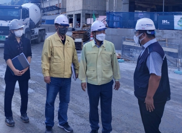 [충청뉴스큐] 단양군은 지난 26일 단양읍 도전리 659-2번지 일원 e편한 단양리버비스타 신축현장과 관련된 필요 조치 이행여부 점검을 위해 직접 현장을 찾았다.