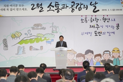 원희룡 지사는 “설 연휴가 지나면 2019년에 크고 작은 업무 현안사업과 정책들이 원활이 추진될 수 있도록 준비 태세를 갖춰야 한다”고 말했다.