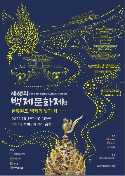 이번 제68회 백제문화제는 ‘한류 원조, 백제의 빛과 향’이라는 주제로 10월 1일부터 10일까지 열흘간 구드래 주 행사장, 시내 상권 등 부여군과 공주시에서 개최된다.