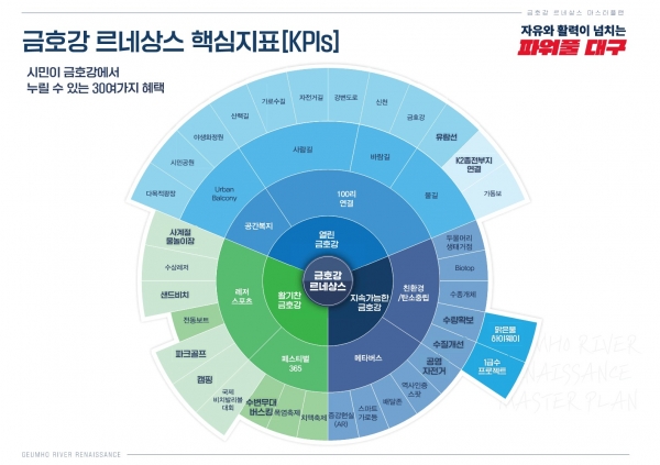 이번 마스터플랜은 열린 금호강, 활기찬 금호강, 지속가능한 금호강의 3대 목표와 30여 가지 실행계획을 통해 시민 공간복지를 실현하고 지역경제를 활성화하며 기후위기에 강한 글로벌 내륙수변도시 대구를 만들 계획이라고 전했다.