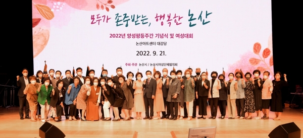 [충청뉴스큐] 논산시와 논산시여성단체협의회가 21일 논산아트센터 대공연장에서 ‘2022년 양성평등주간 기념식 및 여성대회’를 열고 양성평등 사회 실현을 위한 화합과 소통의 시간을 가졌다.