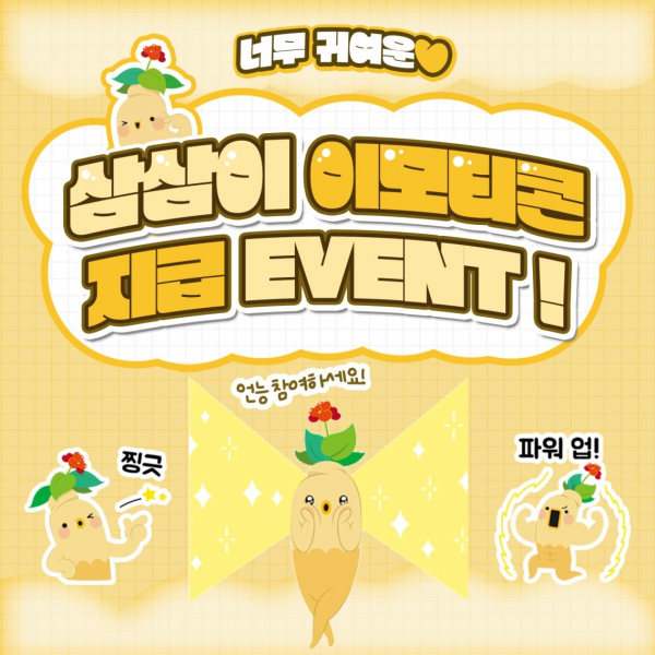 [충청뉴스큐] 금산군은 제40회 금산인삼축제 개최를 기념해 26일부터 금산인삼 대표 캐릭터 삼삼이 카카오톡 이모티콘을 무료로 배포한다.