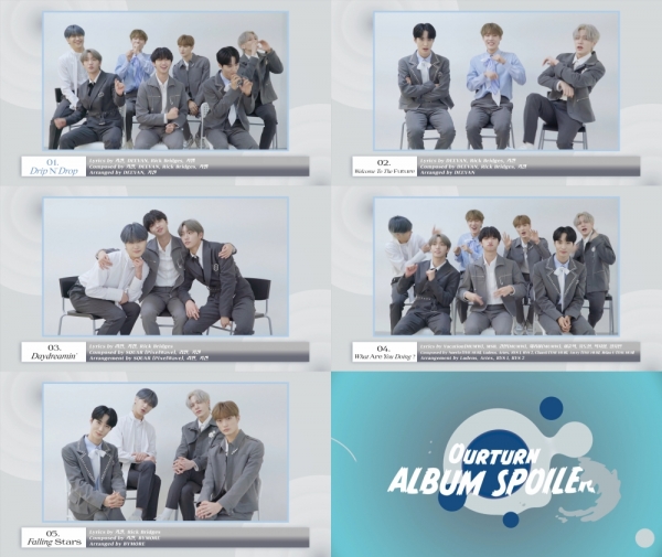 28일 발매되는 미래소년의 새 앨범 ‘Ourturn’에는 타이틀곡 ‘Drop N’ Drop’을 시작으로 ‘Welcome To The Future’, ‘Daydreamin’’, ‘What Are You Doing?’, ‘Falling Stars’까지 총 다섯 곡이 수록된다.