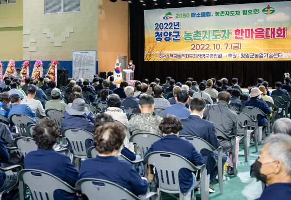 [충청뉴스큐] 청양군농업기술센터가 지난 7일 청양군 다목적체육관에서 농촌지도자회원과 내빈 등 350여명이 참석한 가운데 ‘2022년 청양군 농촌지도자 한마음대회’를 열고 저탄소 농업 실천과 지속 가능한 농촌 조성을 다짐했다.