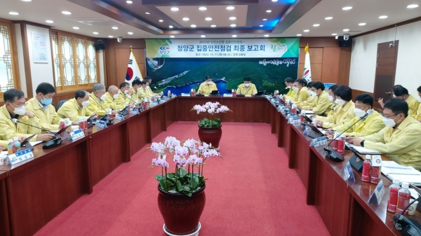 [충청뉴스큐] 청양군이 군민의 재산과 생명을 보호하기 위해 실시한 ‘2022년 대한민국 안전 대전환’ 안전 점검을 마치고 추진상황 최종보고회를 열어 중장기적 보수·보강계획을 수립했다고 13일 밝혔다.