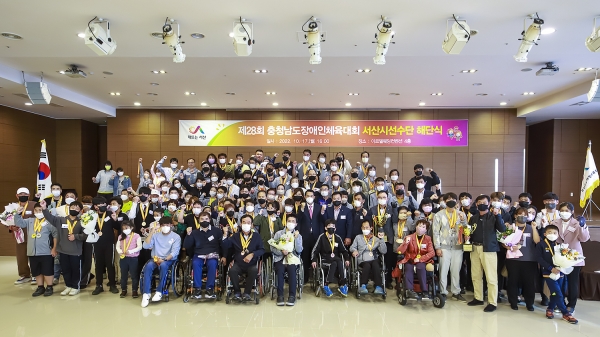 [충청뉴스큐] 서산시장애인체육회가 지난 17일 서산시 아르델웨딩컨벤션에서 제28회 충청남도장애인체육대회 선수단 해단식을 개최했다.