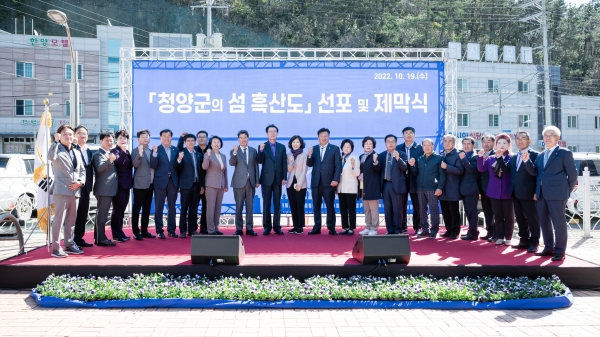 [충청뉴스큐] 지난 2월 전남 신안군과 자매의 인연을 맺으면서 흑산도에 대한 ‘청양군 명예 섬’ 부여 업무협약을 체결한 청양군이 지난 19일 표지석을 세우고 제막식을 열었다.