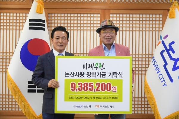논산시는 지난 25일 ㈜맥키스컴퍼니의 조웅래 회장과 관계자 등이 참석한 가운데 기탁식을 갖고 938만원의 장학금을 전달받았다.