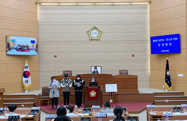 [충청뉴스큐] 보령시는 지난 6일 보령시의회 본회의장에서 제5대 보령시 어린이·청소년 의회 모의 회의를 개최하고 7개월간의 활동을 마무리했다.
