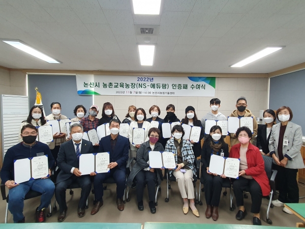 [충청뉴스큐] 논산시가 농업기술센터가 6월부터 실시한 ‘2022년 논산시 농촌교육농장 인증 교육’을 모두 마무리하고 수료식을 가졌다.