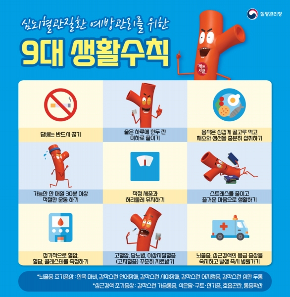 보건의료원 관계자는 “심뇌혈관질환에 의한 인명피해를 막기 위해서는 정기적인 혈압·혈당 수치 확인 등 고혈압이나 당뇨병 관리에 최선을 다해야 한다”며 “평소 심근경색이나 뇌졸중 증상을 숙지하고 증상이 발생하는 즉시 119에 도움을 요청해야 한다”고 강조했다.