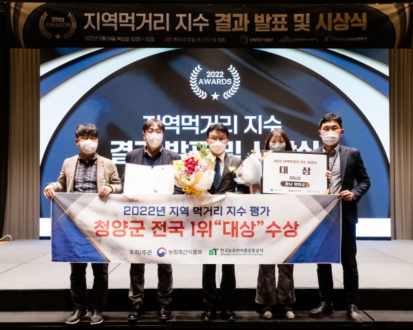[충청뉴스큐] 청양군이 지난 24일 농림축산식품부 주최, 한국농수산유통공사 주관 ‘2022년 지역 먹거리 지수 측정사업’에서 영예의 대상을 차지했다.