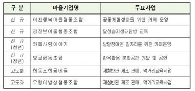 이번에 선정된 마을기업들은 발달장애 청년들이 참여하는 카페, 한옥을 활용한 문화 공간 개발 및 공연, 달성습지 생태 탐방 교육 등을 통해 양질의 일자리 창출은 물론 양극화 완화를 위한 사회적 경제 조직의 일환으로 동반 성장해 나갈 수 있는 동력을 얻게 된다.