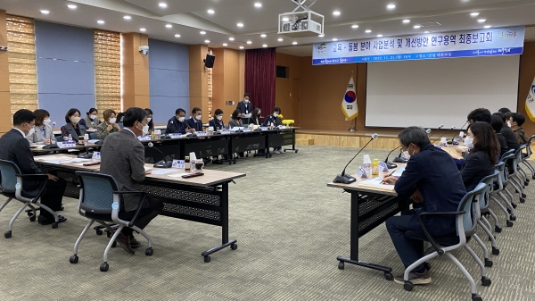 김돈곤 군수는 “이번 연구용역으로 교육·돌봄 사업에 대한 정확한 현황과 학부모 요구를 자세히 알게 됐다”며 “제시된 발전방안을 이행하기 위해 민·관·학이 함께하는 학습동아리를 활성화하고 세부 추진사항을 계속 논의하겠다”고 말했다.