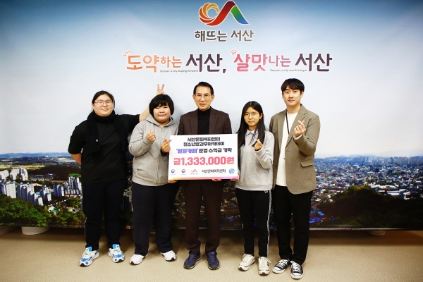시장실에서 열린 기탁식에는 이완섭 서산시장, 서산문화복지센터 청소년방과후아카데미 담당자, 안정아 청소년활동팀장, 방과후아카데미 청소년 참여자 등이 참석했다.