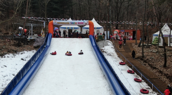 눈썰매장은 슬로프 77m, 폭 9m로 운영시간은 오전 10시부터 낮 12시, 오후 1시부터 4시까지이고 입장료 없이 튜브 눈썰매 대여료 2000원만 있으면 이용이 가능하다.