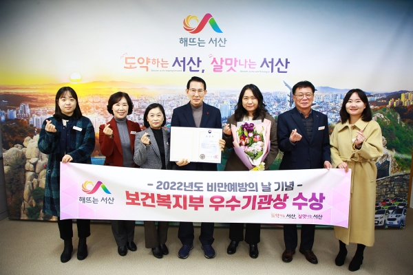 [충청뉴스큐] 충남 서산시는 비만 인식 제고 및 건강생활 실천 분위기 확산에 기여한 공을 인정받아 ‘비만예방의 날 기념’ 보건복지부 장관상을 수상했다고 22일밝혔다.