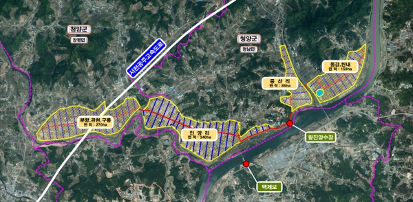 구체적 사업내용은 청남면 왕진리에 금강물을 취수할 수 있는 양수장, 정수장, 가압장을 설치한 이후 급수관로 49.8km를 개설, 4계절 용수공급을 통해 기존의 수질 문제를 해소하고 작물 생산성 향상과 농가 소득증대를 도모하게 된다.