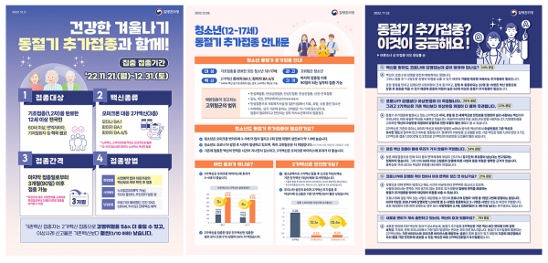 동절기 추가접종 대상자는 12세 이상 기초접종 완료자로 마지막 접종일 기준 3개월 이후부터 접종할 수 있다.