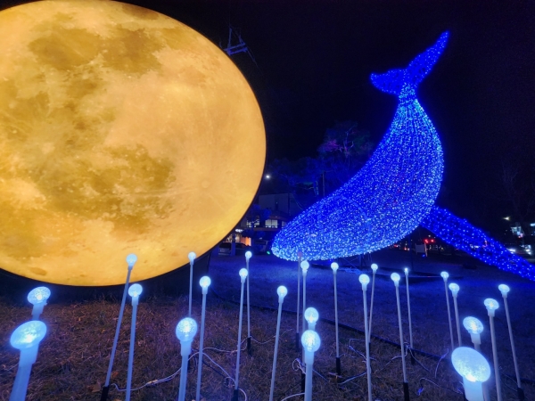 고래, 보름달, 눈꽃, 나무, 꽃 등으로 조성된 야간경관 조명은 반짝거리는 불빛을 이용한 시각적인 즐거움과 아름다움을 선사하고 있다.